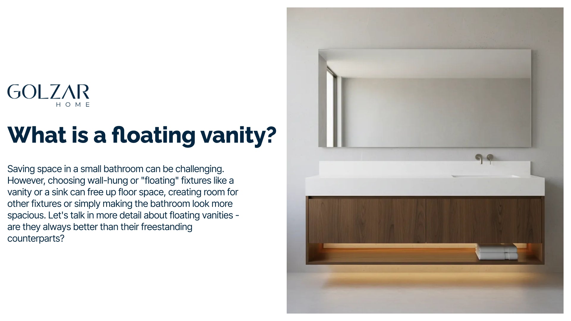 Saving space in a small bathroom can be challenging. However, choosing wall-hung or "floating" fixtures like a vanity or a sink can free up floor space, creating room for other fixtures or simply making the bathroom look more spacious. Let's talk in more detail about floating vanities - are they always better than their freestanding counterparts?