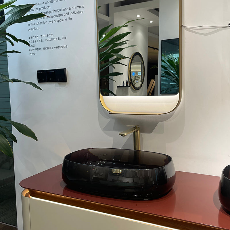 • Elegant double resin vessel sinks with a smoky translucent finish