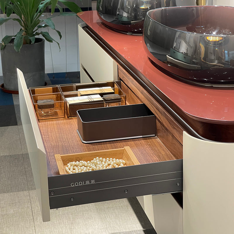 Lucelle High Gloss Creamy Apricot Beige Double Sink Bathroom Vanity - Godi