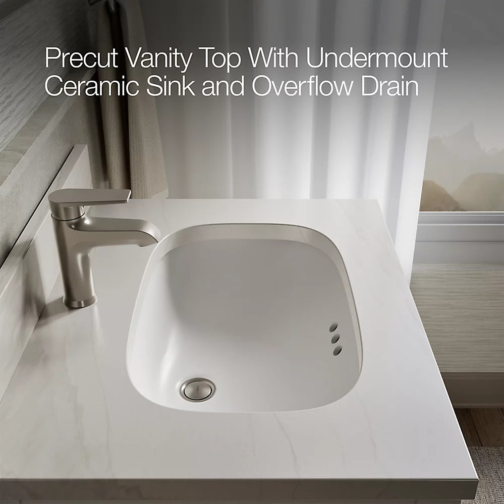 Coordinates with Calacatta (CBB) quartz side splash (sold separately)Calacatta (CBB) quartz vanity top adds beauty and long-lasting durability