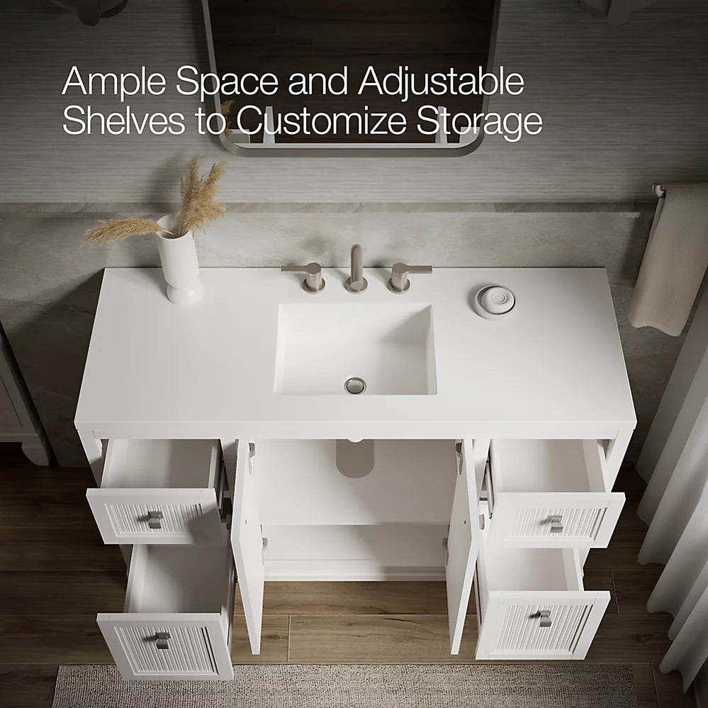 Customize your storage with optional accessories such as floor liners, drawer organizers, and perfectly sized containers (sold separately)Brushed Nickel hardware included on the White and Slate Grey vanities