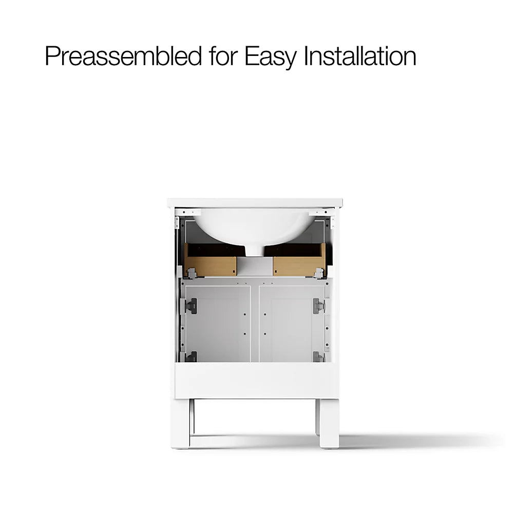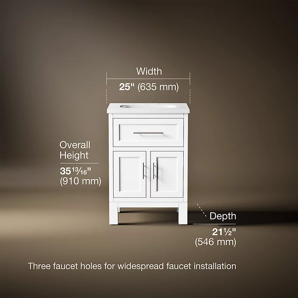 Vanity top has 8" (203 mm) widespread faucet holes; requires deck-mount faucet (sold separately)Three-way adjustable slow-close door hinges for easy cabinet access
