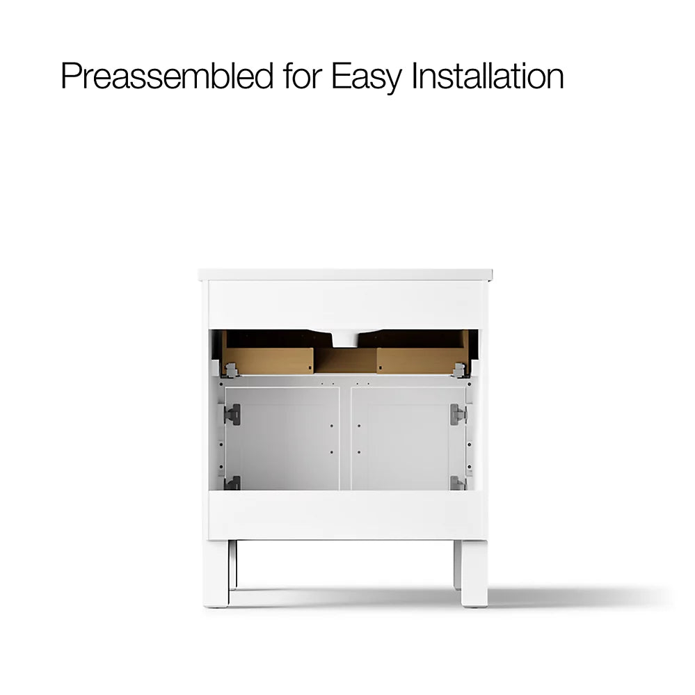 Vanity top has 8" (203 mm) widespread faucet holes; requires deck-mount faucet (sold separately)Three-way adjustable slow-close door hinges for easy cabinet access