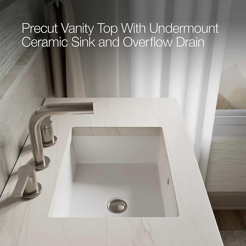 Coordinates with Calacatta (CBB) quartz side splash (sold separately)Calacatta (CBB) quartz vanity top adds beauty and long-lasting durability