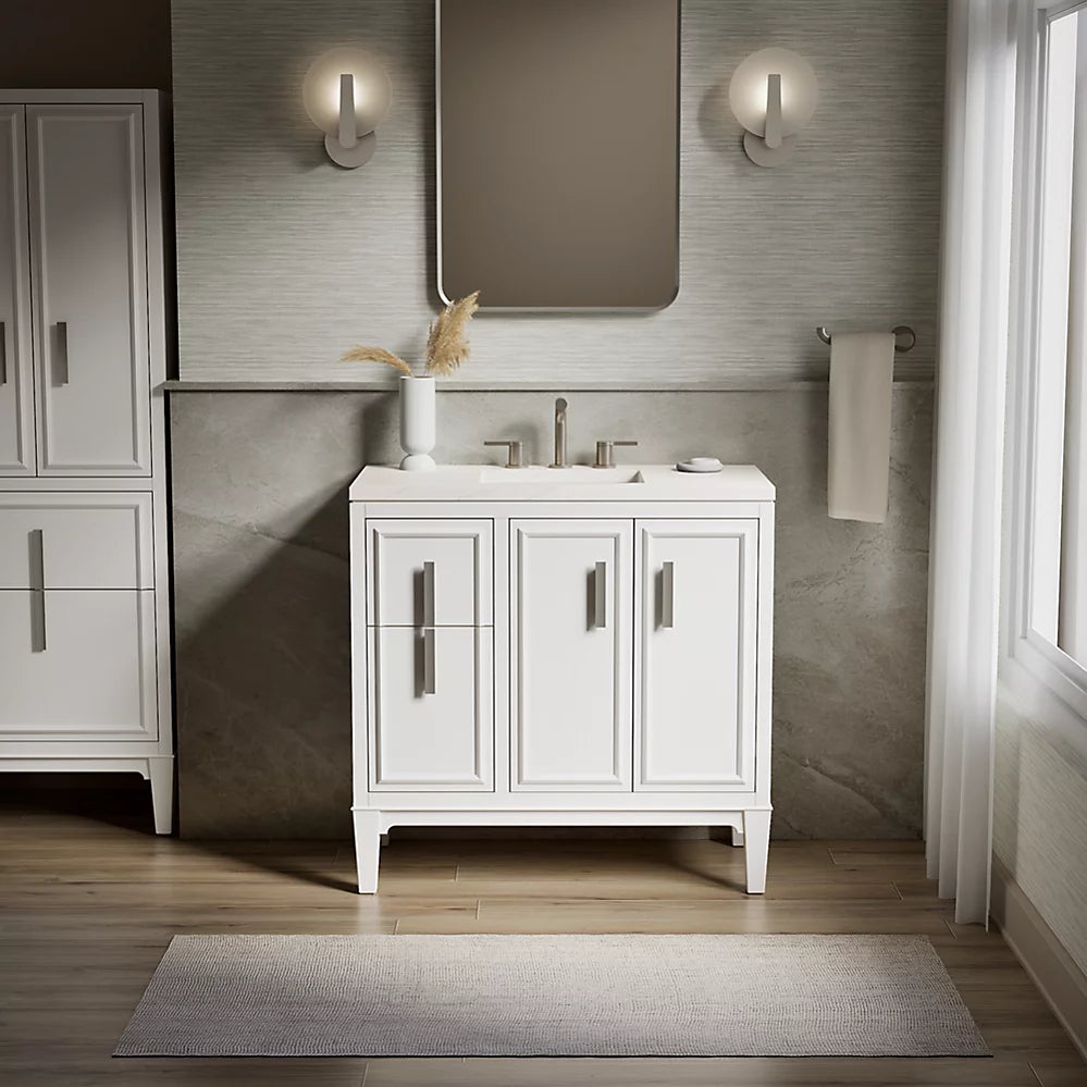 Customize your storage with optional accessories such as floor liners, drawer organizers, and perfectly sized containers (sold separately)Brushed Nickel hardware included on the White and Slate Grey vanities