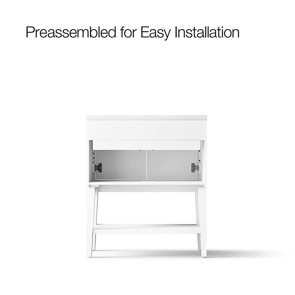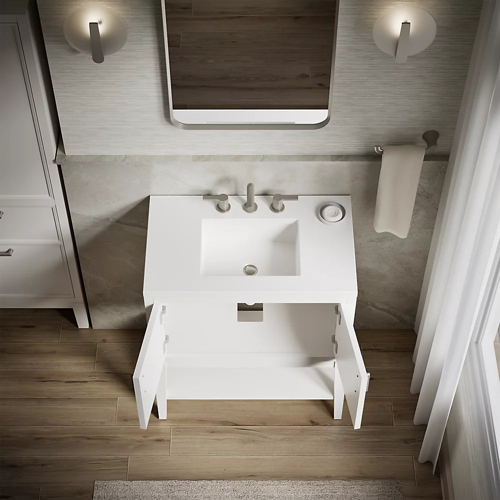 Customize your storage with optional accessories such as floor liners, drawer organizers, and perfectly sized containers (sold separately)Brushed Nickel hardware included on the White and Slate Grey vanities