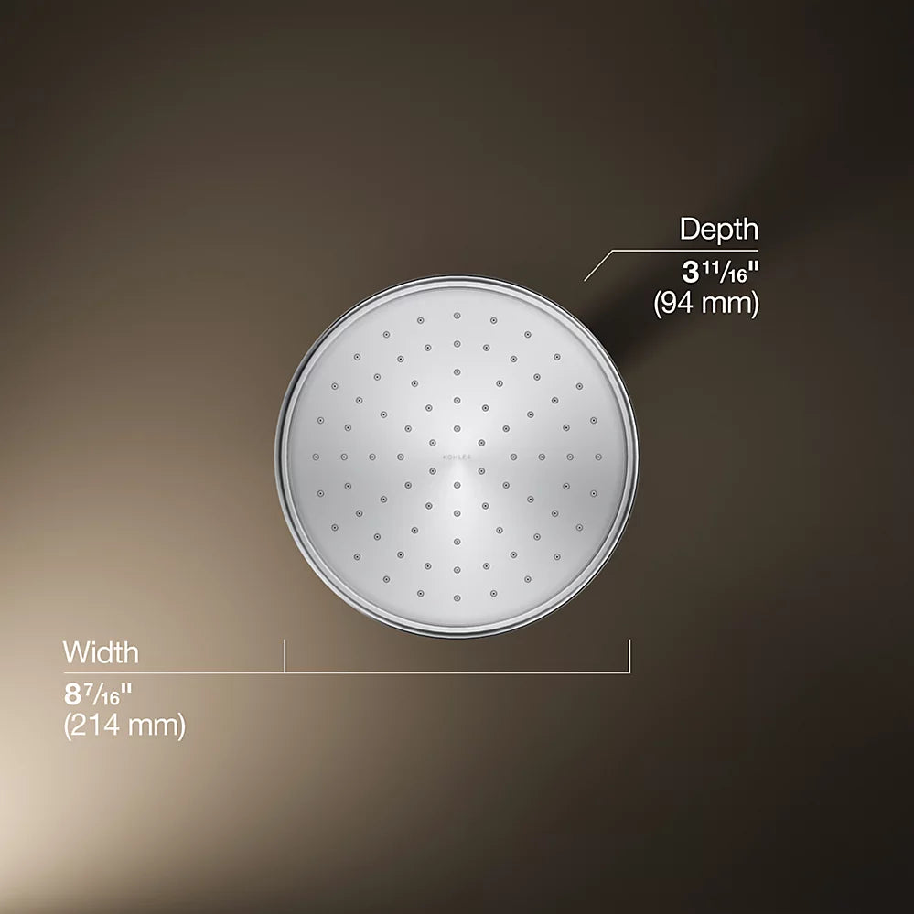 Enjoy a shower that simulates the soaking deluge of a warm summer downpour. This traditional-style rainhead features innovative Katalyst air-induction technology, which efficiently mixes air and water to produce large water droplets and deliver a powerful, thoroughly drenching overhead shower experience. Its clean good looks and durable finish coordinate with many other KOHLER faucets and accessories.