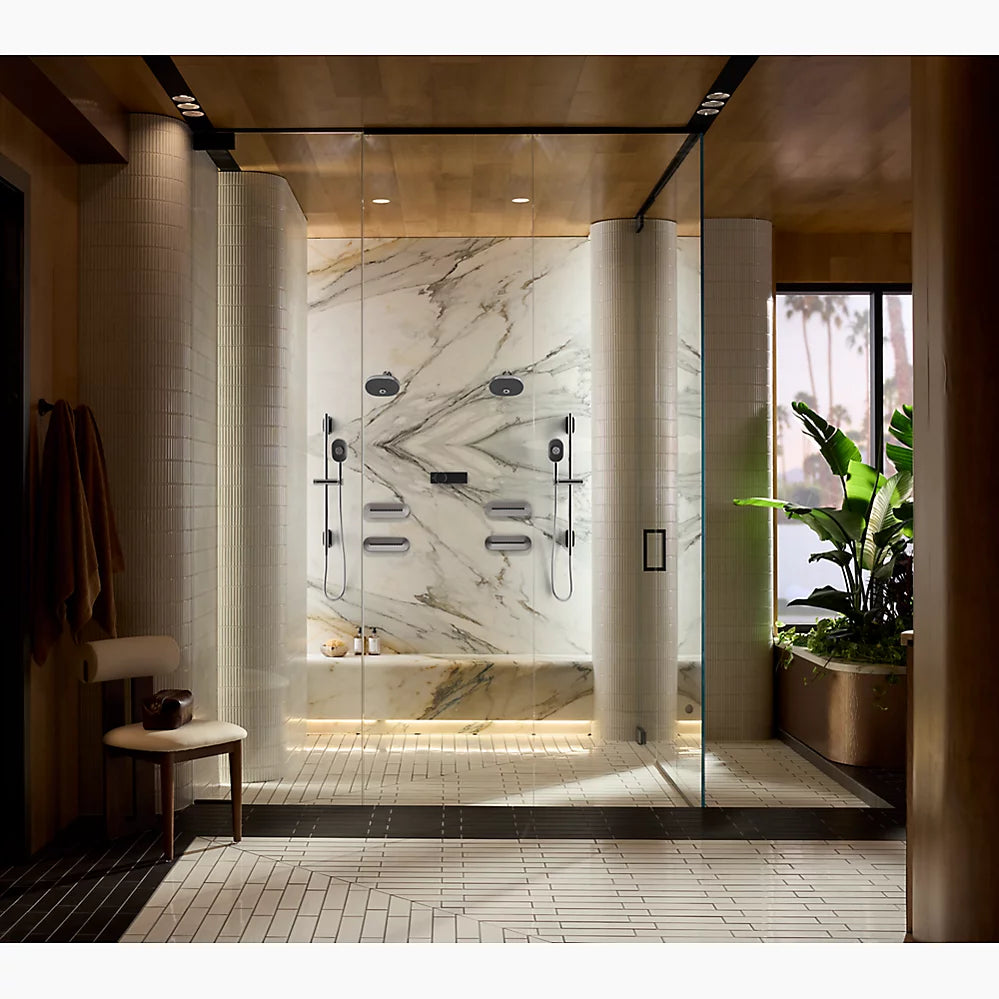 Enjoy the flexibility of a handshower that rinses, restores, and targets sore muscles—all at the touch of a button, while conserving water. The Statement multifunction handshower with 1.75 gpm flow rate lets you choose between Full Coverage with Katalyst air-induction technology for large luxurious water drops, a super-fine silky Cloud spray experience, and more focused, Deep Massage kinetic cross-streams. The three-function oblong handshower features an intuitive mode selector button for switch the spray. Its sleek, minimalist design complements many KOHLER faucets and accessories.