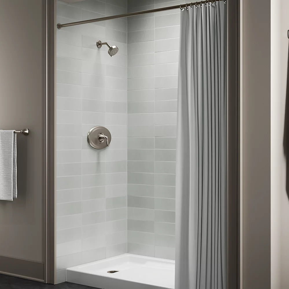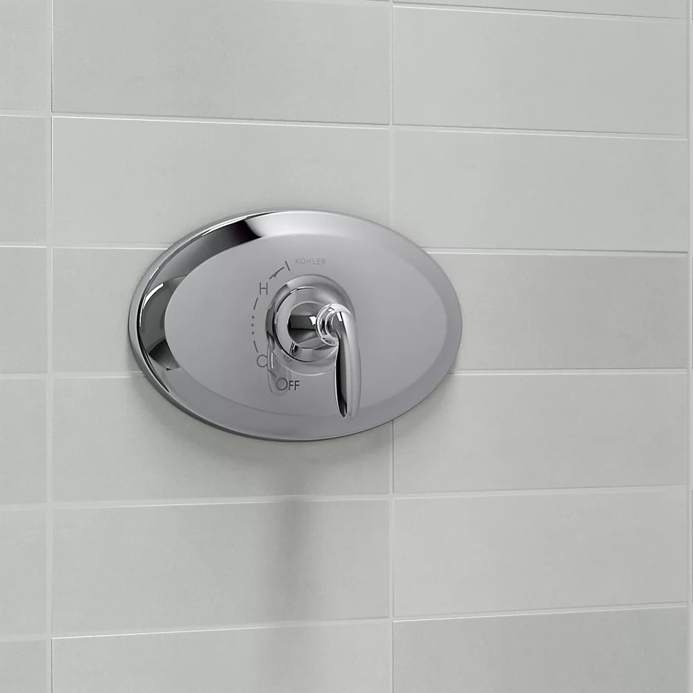 Easily cover the holes from your two-handle shower valving conversion with our Remodel Rite-Temp shower trim kit. The escutcheon plate easily covers holes from your outdated two-handle shower trim installation, and the single-lever handle easily rotates for on/off activation and temperature control. A three-function showerhead completes the set, and with clean, attractive lines, the plate, handle, and showerhead will fit in with any bathroom décor. At Kohler, we make it our business to help you create the bathroom space of your dreams.