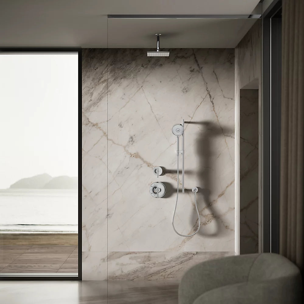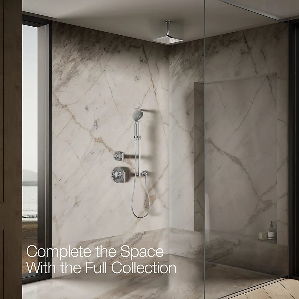 Enjoy a shower that simulates the soaking deluge of a warm summer downpour. This contemporary-style rainhead features innovative Katalyst air-induction technology, which efficiently mixes air and water to produce large water droplets and deliver a powerful, thoroughly drenching overhead shower experience. Its clean good looks and durable finish coordinate with many other KOHLER faucets and accessories.