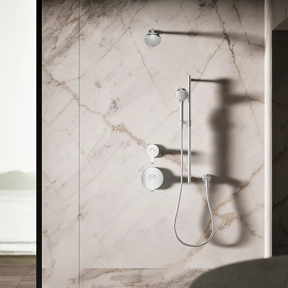 The Awaken handshower brings KOHLER quality, design, and performance to your bath. Advanced spray performance delivers three distinct sprays - wide coverage, intense drenching, or targeted - with a smooth rotation of a thumb tab. Ergonomic design makes for superior comfort and ease of use, with ideal balance and weight in the hand. The artfully sculpted sprayface takes its inspiration from the purposeful patterns found in nature, complementing a wide range of bathroom styles.