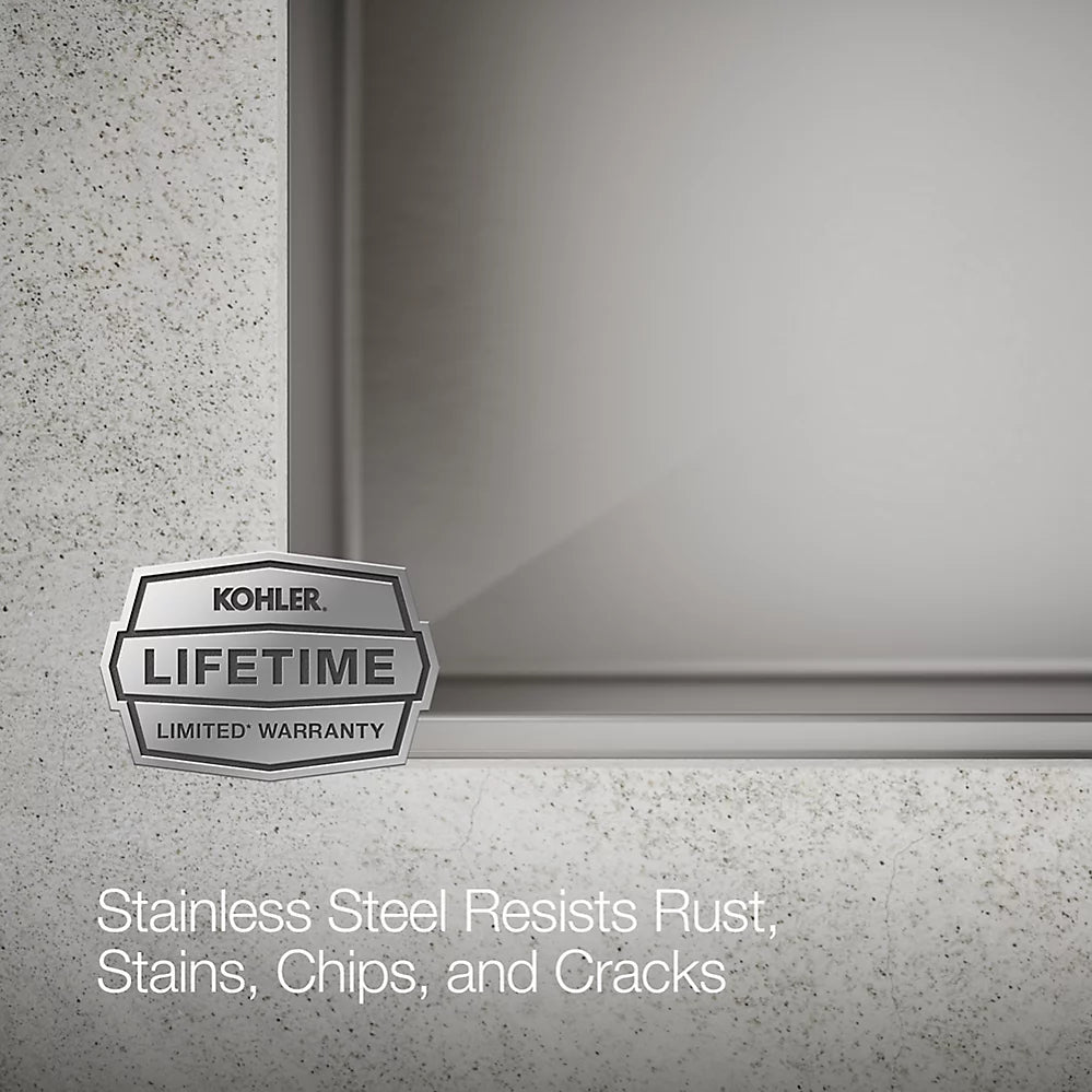 The KOHLER® Strive 23" undermount workstation kitchen sink raises the bar on functionality and professional styling with custom accessories that integrate seamlessly within the built-in bowl ledge.