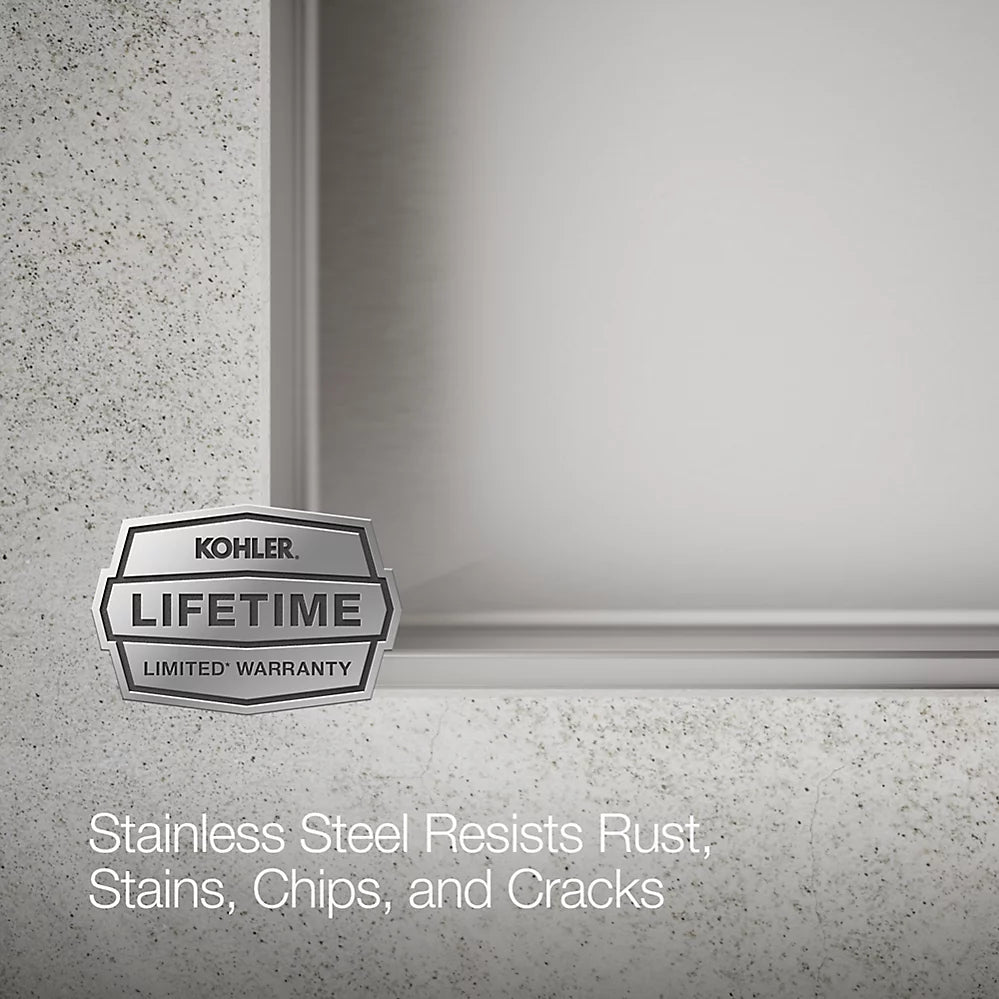 The KOHLER® Strive 32" undermount workstation kitchen sink raises the bar on functionality and professional styling with custom accessories that integrate seamlessly within the bowl's ledge.