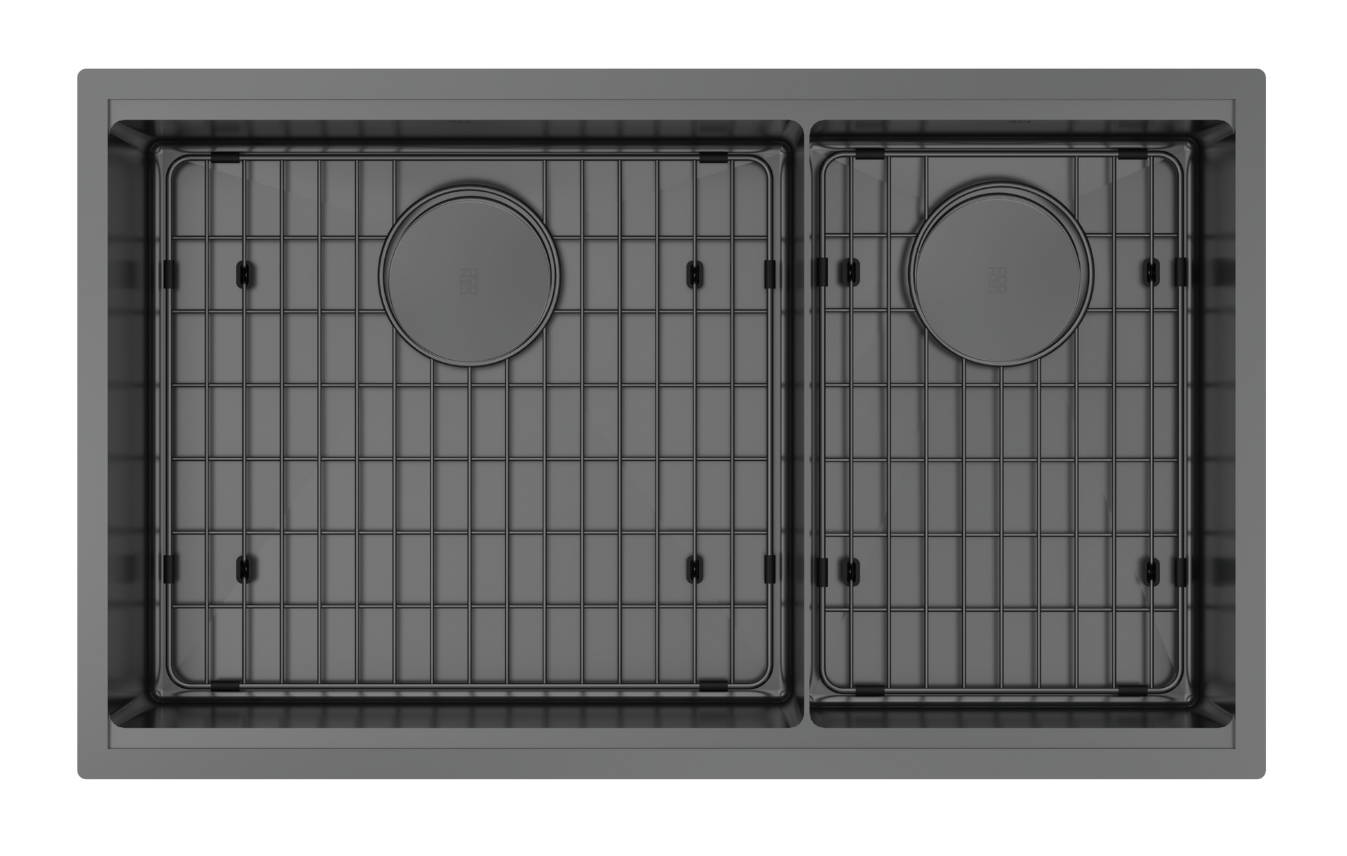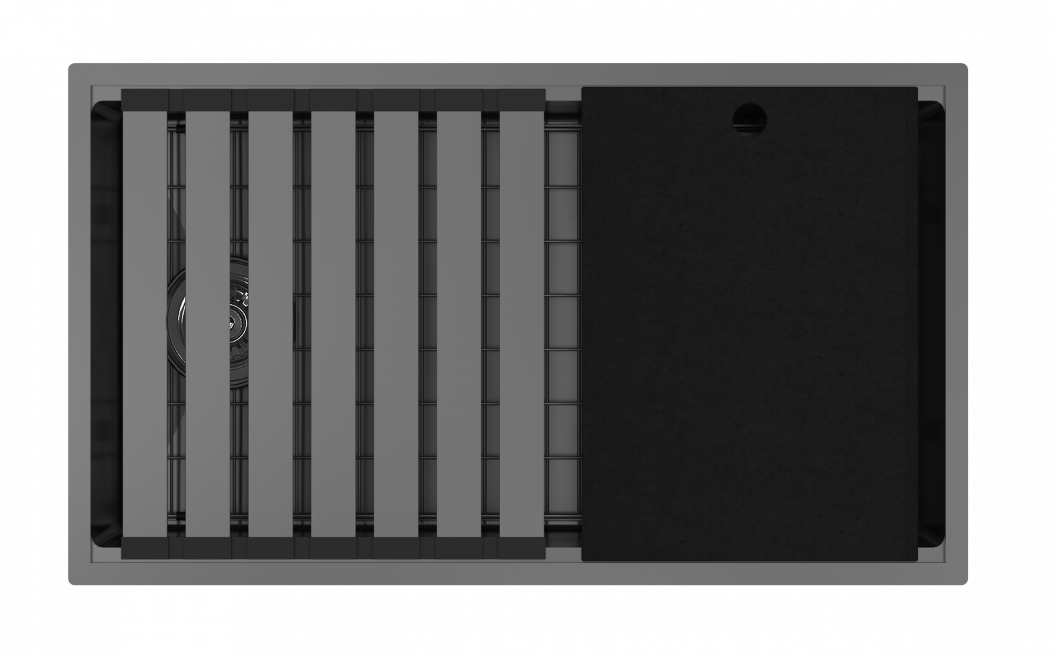 • Black Pearl coloured bottom grid(s), drainer kit(s), and drain cover(s), roll-out dry mat, Fibre Rock™ cutting board