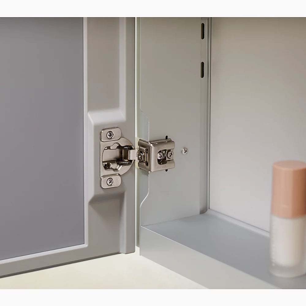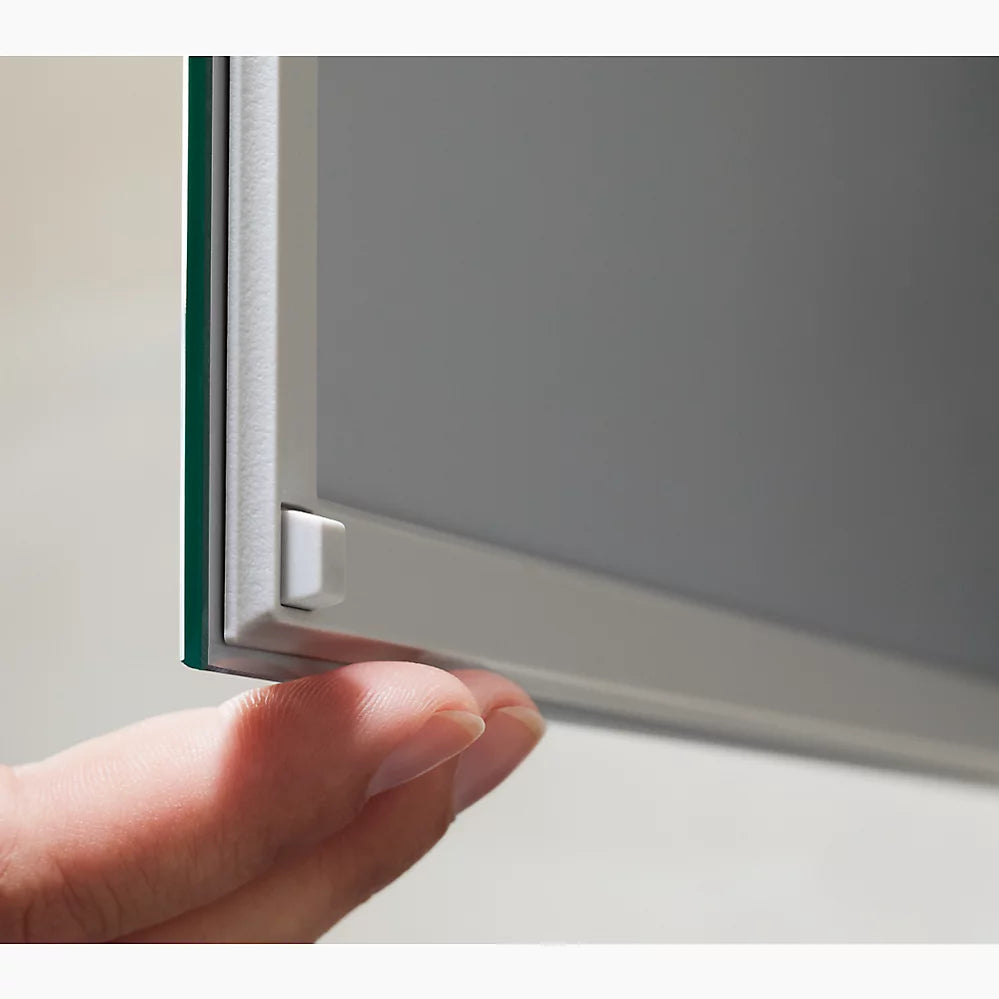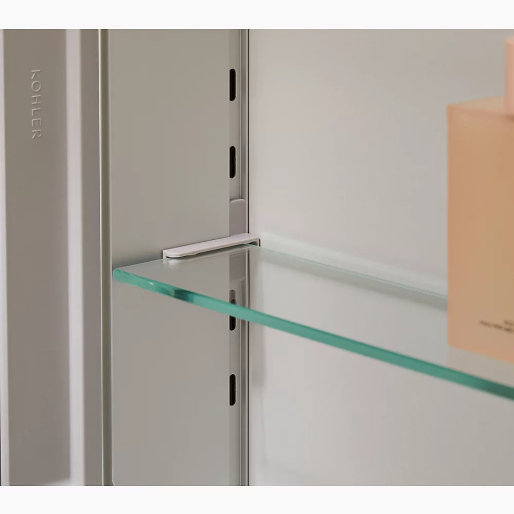 This Embark Slim 20" x 26" frameless medicine cabinet helps you put your best face forward. The mirror on the front door features a flat edge for enhanced styling. Inside, adjustable glass shelves easily accommodate your toiletries.