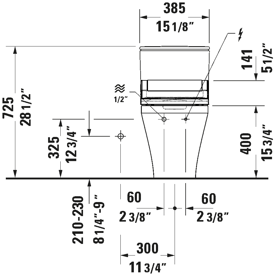 SensoWash toilet, 28 1/8 ", elongated, Siphonic, Flushing rim: Closed, Outlet: vertical, Rough-in: 12 ", cUPC listed: Yes