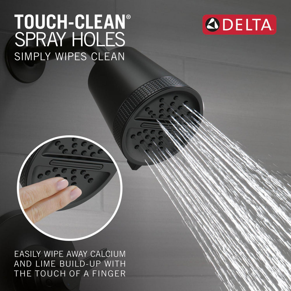 Soft, rubber Touch-Clean spray holes allow you to easily wipe away calcium and lime build-up from the spray face of your shower head and hand shower with the touch of a fingerInstalls in minutesSpray settings include: Full Body spray, Waterfall spray, and PausePause feature reduces water to a trickle, giving you space for shaving, lathering and other shower tasks while maintaining your temperature settingsWaterSense labeled showers use at least 20% less water than the industry standard?saving you money without compromising performance