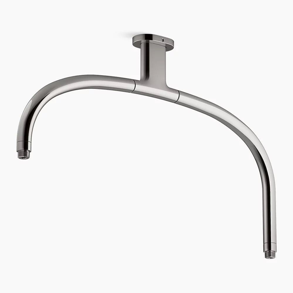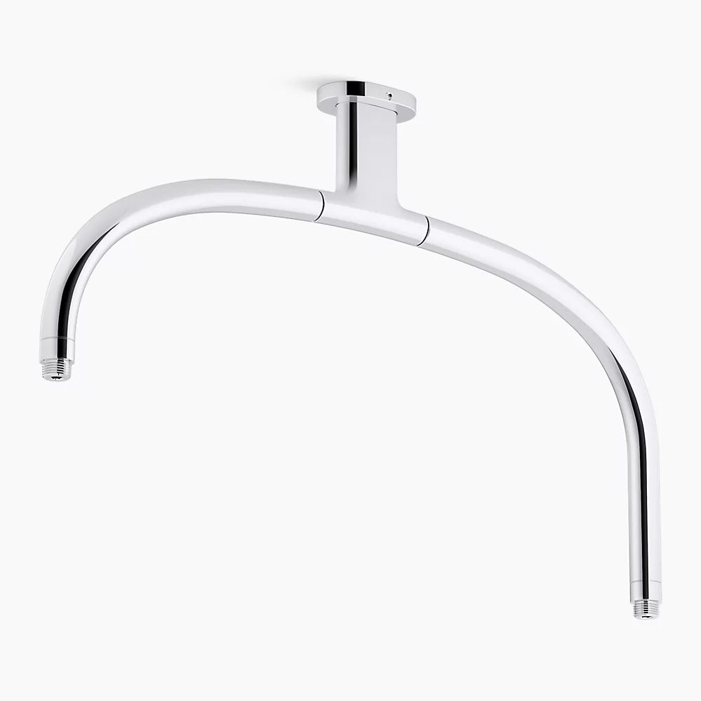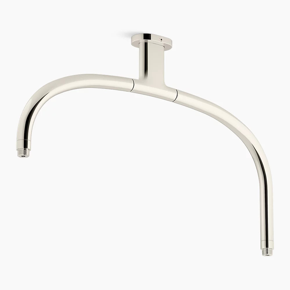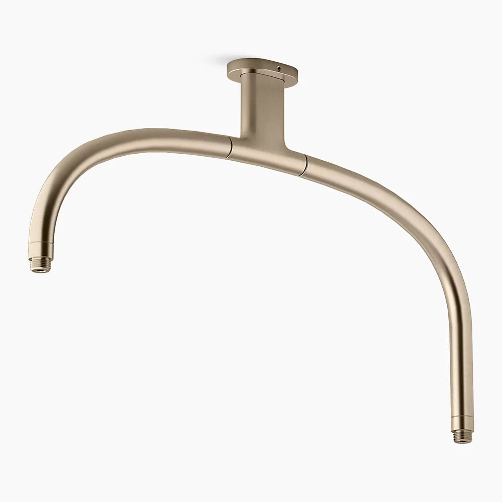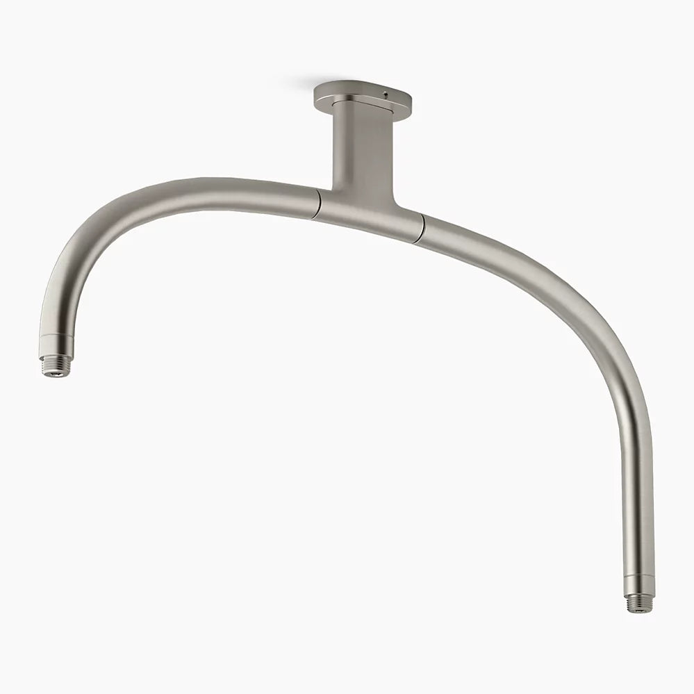 Create a unique, memorable, spa-like showering experience for two with this arched ceiling-mount dual rainhead arm. Influenced by iconic modern home design, the 14½" x 22" dual rainhead arm provides a one-of-a-kind multiple shower experience, if desired, when paired with two rainheads or a rainhead/wand handshower and hose combination (each sold separately). With durable brass construction and minimalist design, this shower accessory is versatile enough for any custom or traditional showering environment.