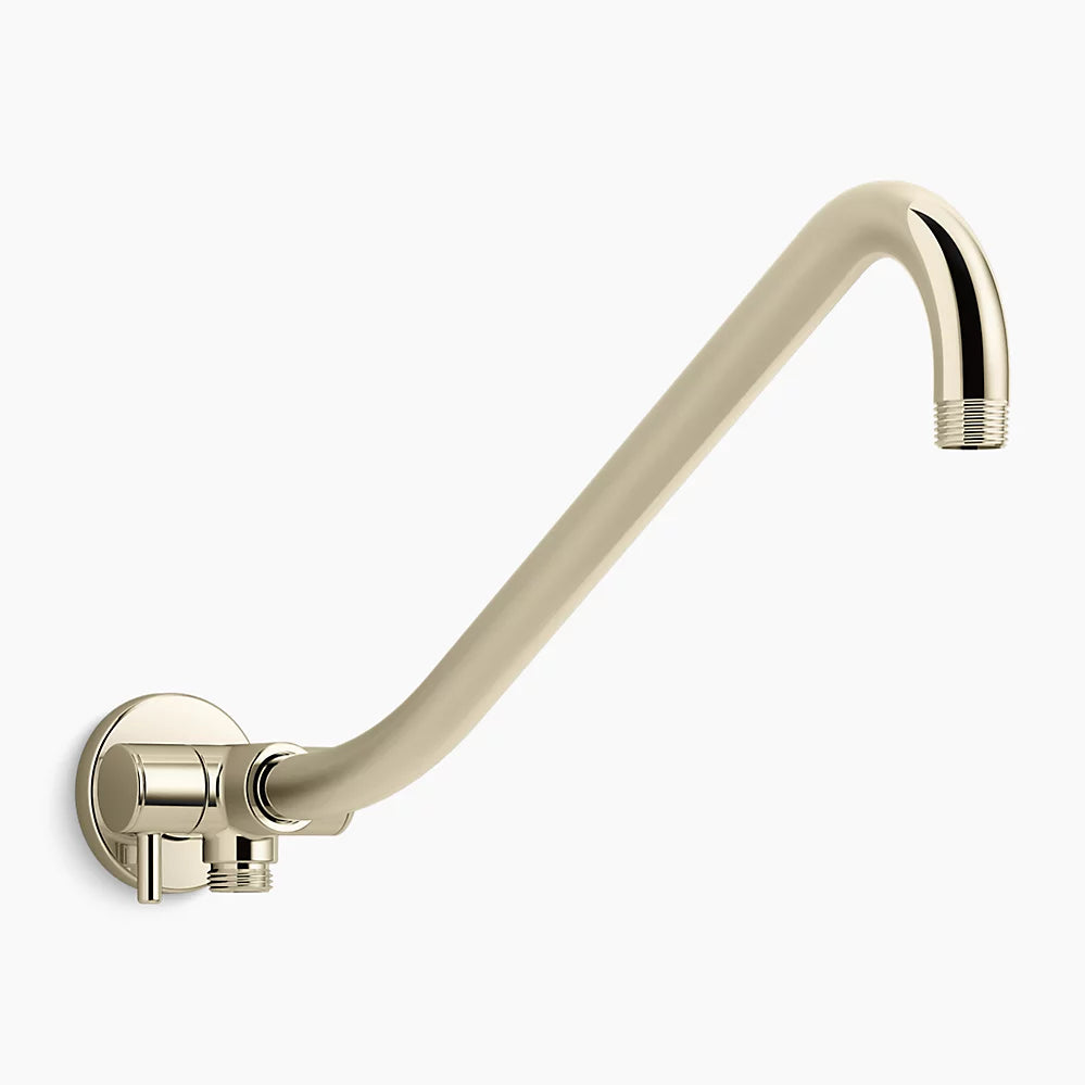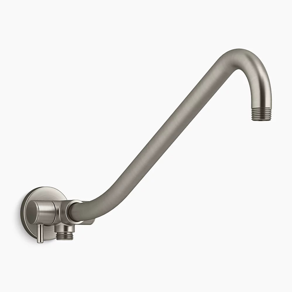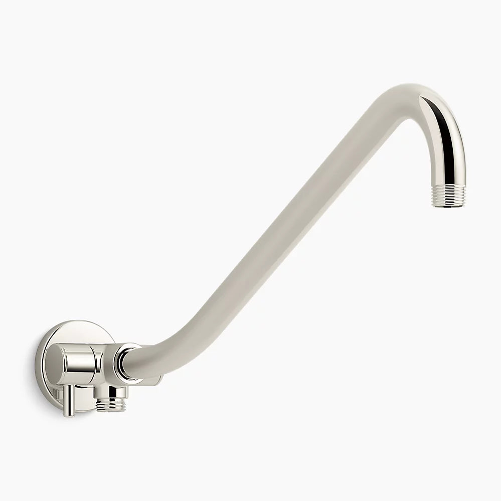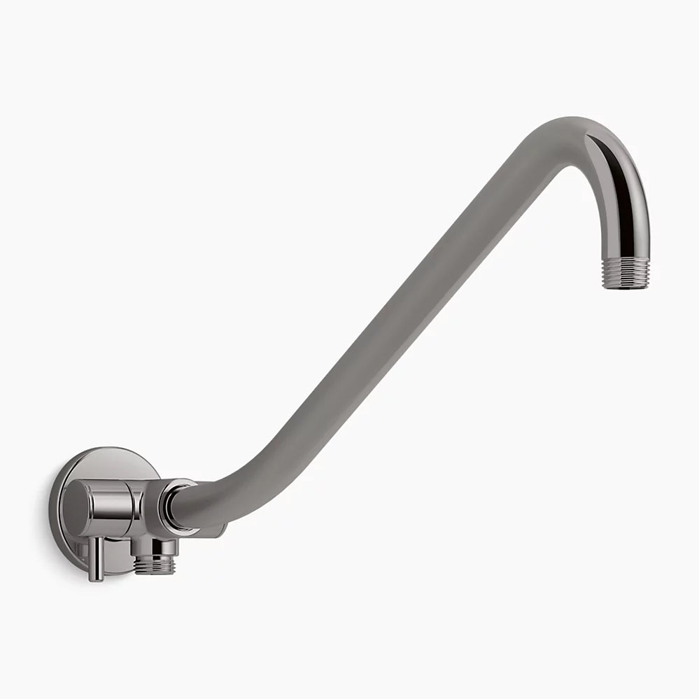 With a graceful gooseneck curve, this showerarm includes a diverter that makes it easy to switch the water flow from a rainhead to handshower.