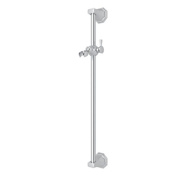 - Slide bar holds a quick glide adjustable handshower bracket that effortlessly moves up or down depending on bather's height