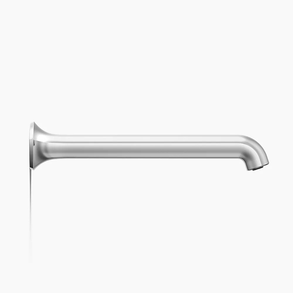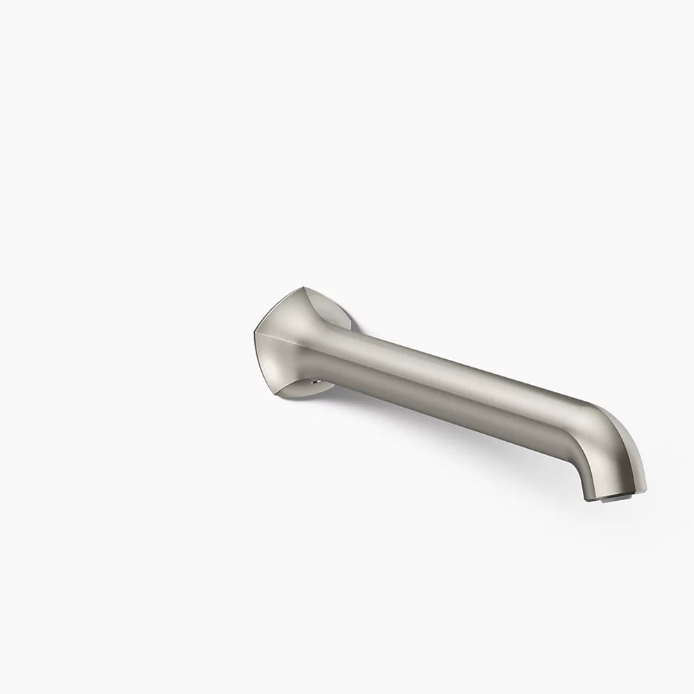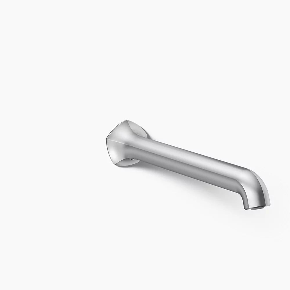 Unapologetically luxurious and truly unforgettable, Occasion bathroom faucets and accessories draw inspiration from 1960s Hollywood glamour and extravagance. Fashioned after the era’s sleek dress lines and bold car designs, the Occasion collection reflects graceful elegance, blending classic midcentury and modern design. Customize your bath with the collection’s distinctive pentagonal accents, faceted bases, flowing lines, and delicate edges. Choose a spout, handles, and finish to build your own signature design. Minimalist with soft square angles, the Occasion wall-mount 12" bath spout with Straight design pairs with your choice of Occasion wall-mount bath faucet handles for a look as fashionable as it is functional.