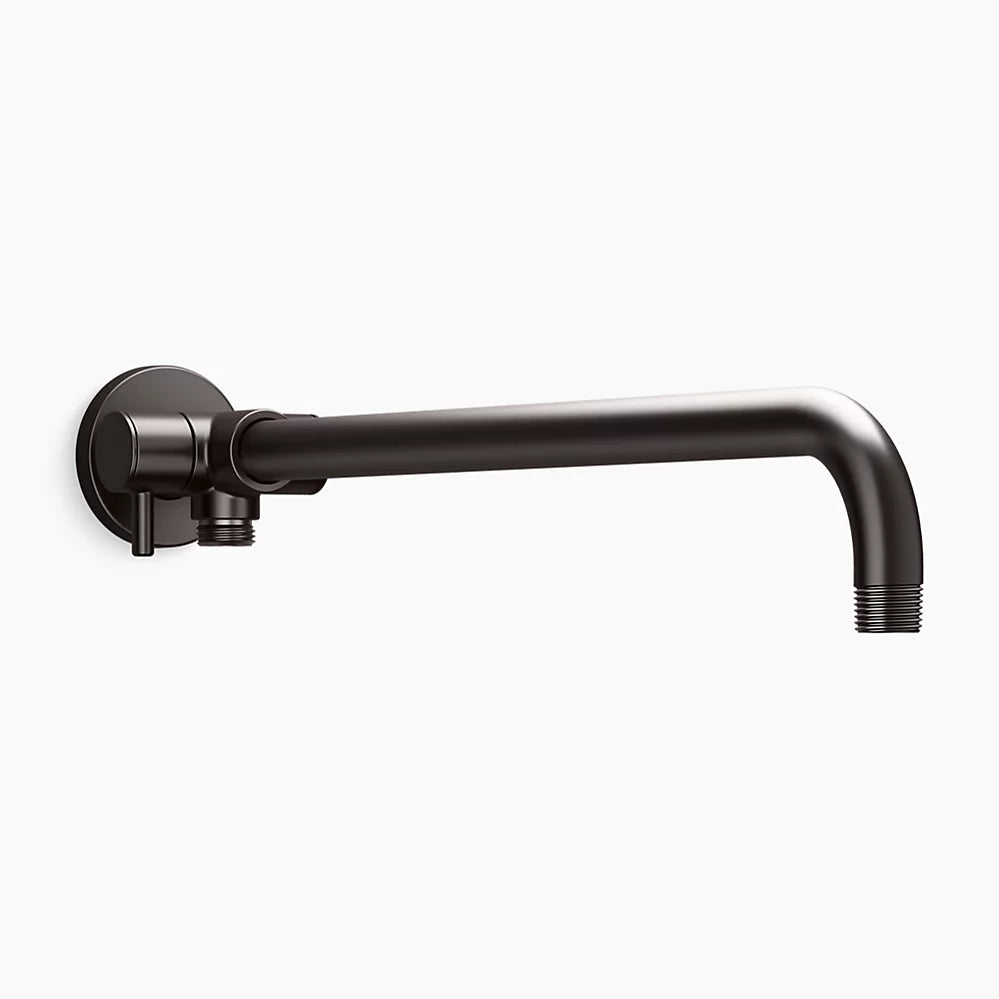 This shower arm includes a diverter that makes it easy to switch the water flow from rainhead to handshower or to run both at the same time.