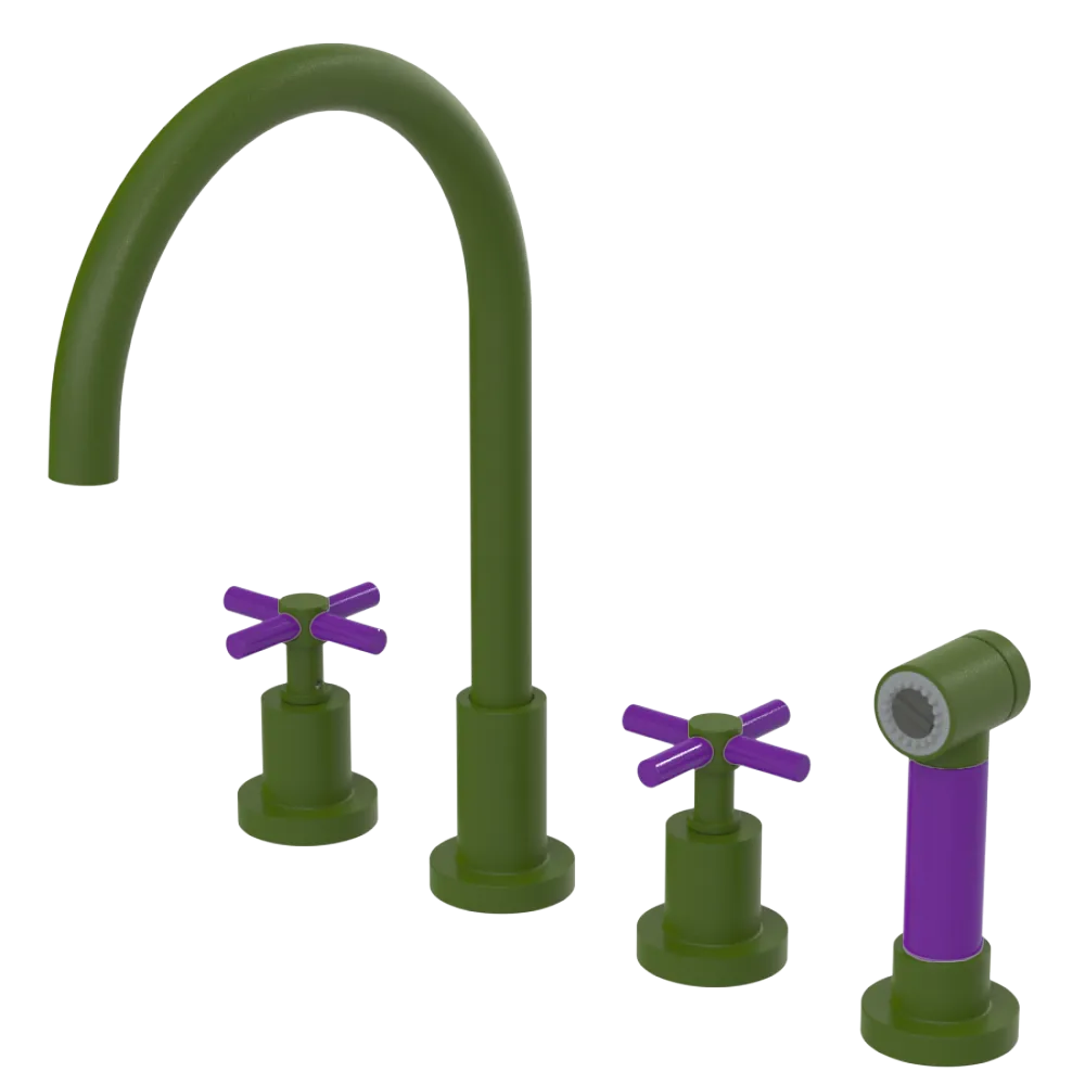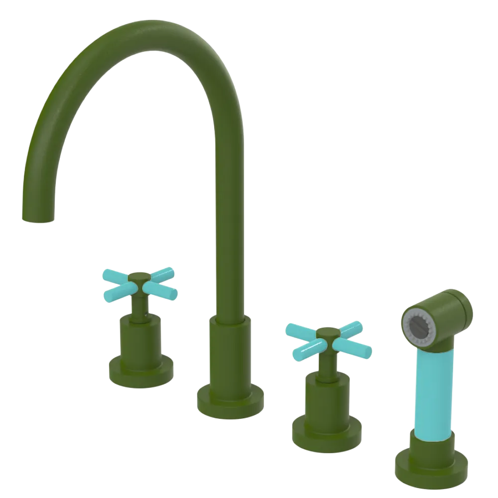 Rubinet Widespread Kitchen Set with LaSalle Spout with Hand Spray Green Envy