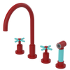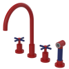 Rubinet Widespread Kitchen Set with LaSalle Spout with Hand Spray Maroon