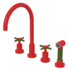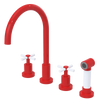 Rubinet Widespread Kitchen Set with LaSalle Spout with Hand Spray Red