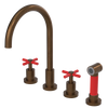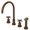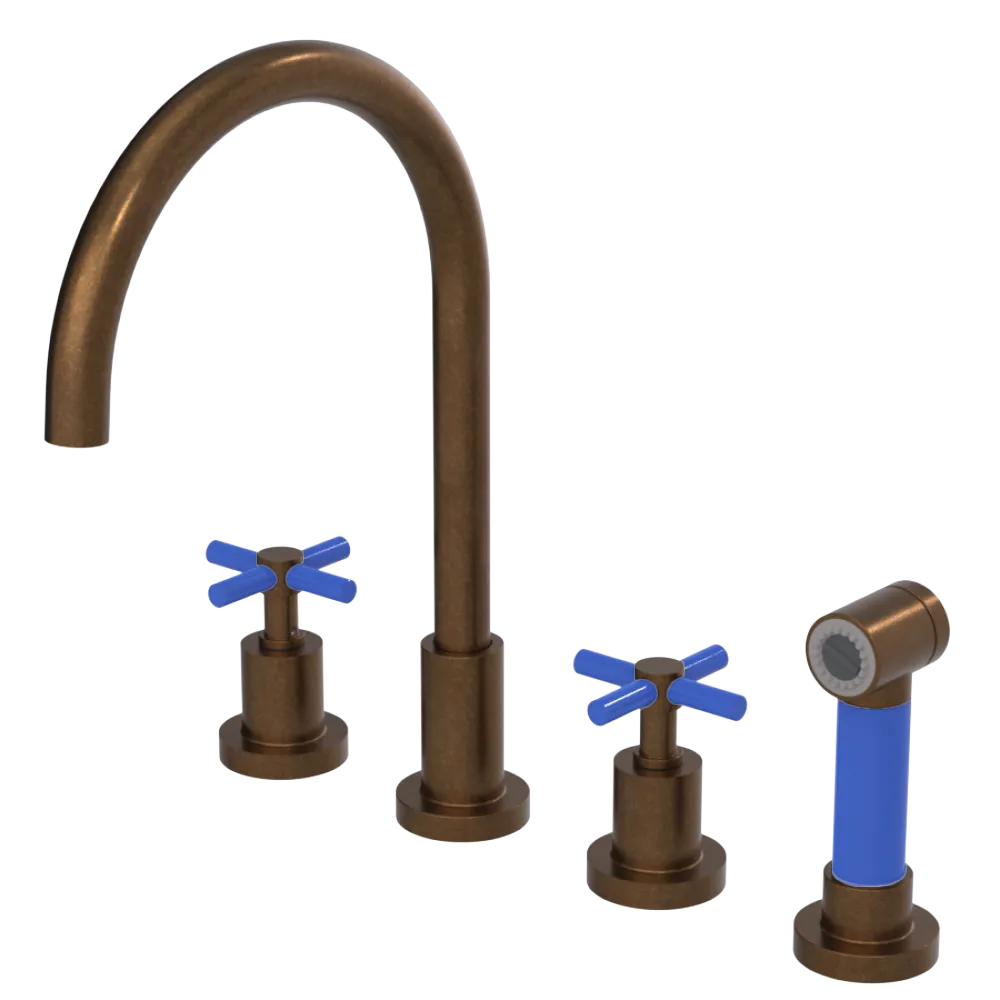 Rubinet Widespread Kitchen Set with LaSalle Spout with Hand Spray Tuscan Brass