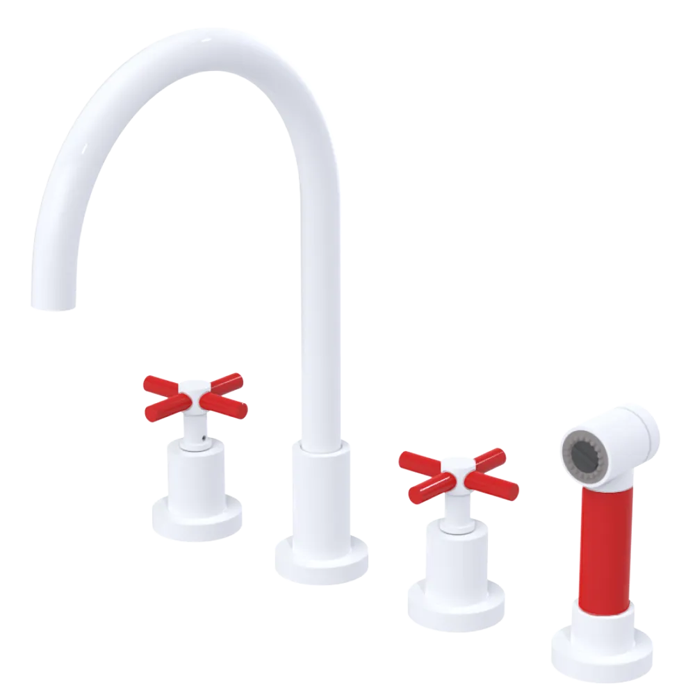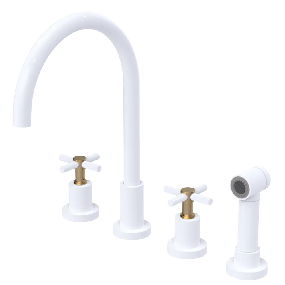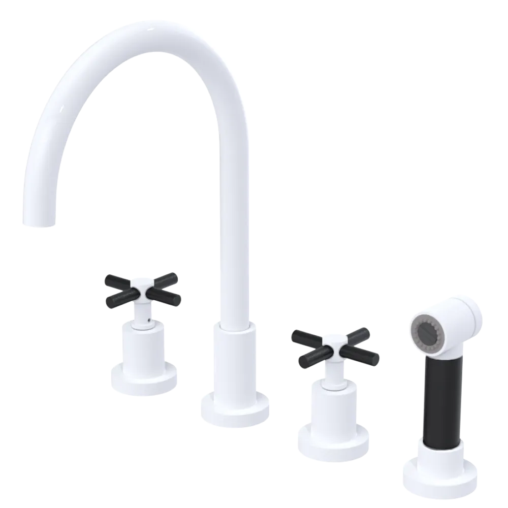 Rubinet Widespread Kitchen Set with LaSalle Spout with Hand Spray White