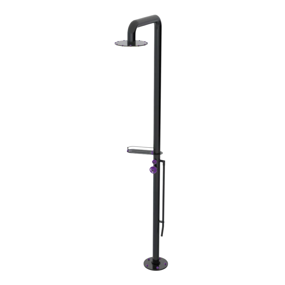 Rubinet Pressure Balance Outdoor Shower with Foot Rinse & 10" Shower Head (with shelf) - 304 Stainless Steel Black