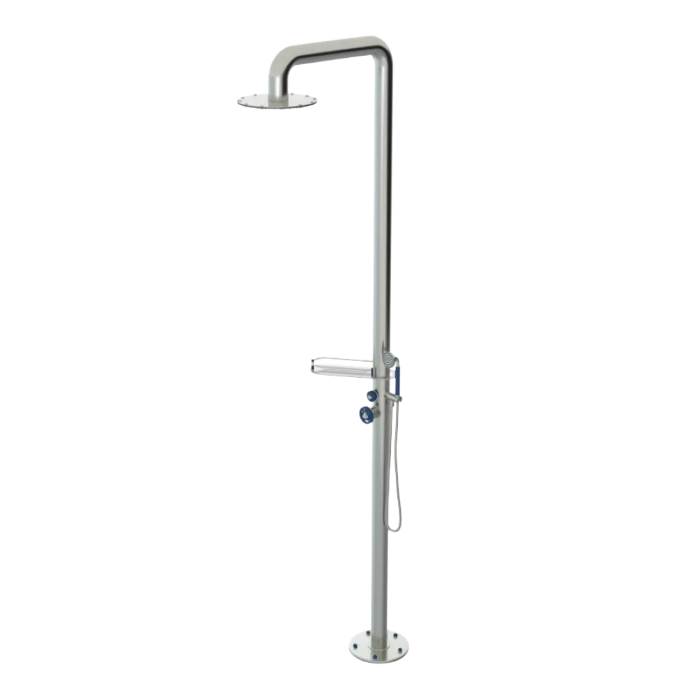 Rubinet Pressure Balance Outdoor Shower with Hand Held Shower & 10" Shower Head (with shelf) - 304 Stainless Steel Satin Nickel