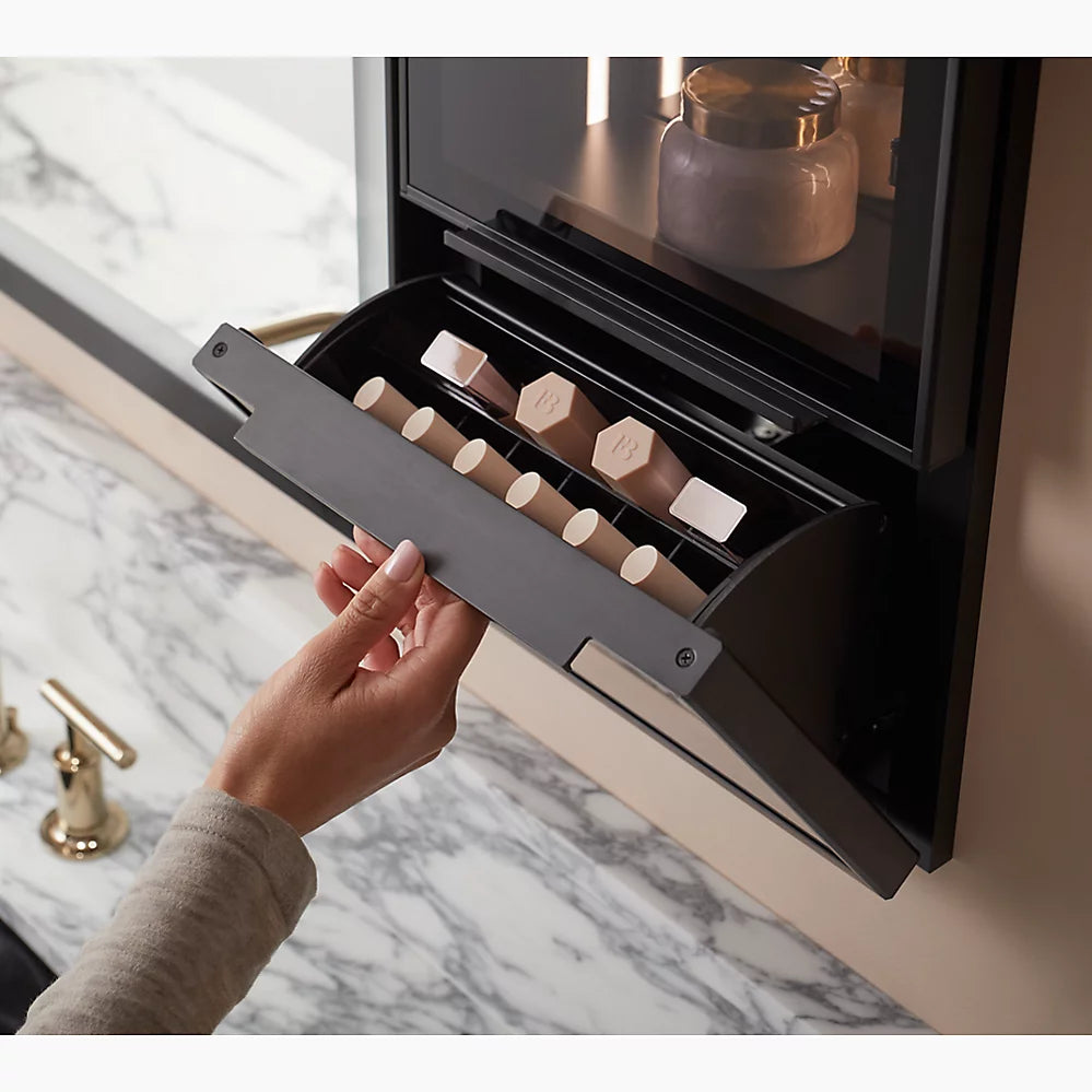 - Convenient tip-out drawer for storing smaller, frequently used items