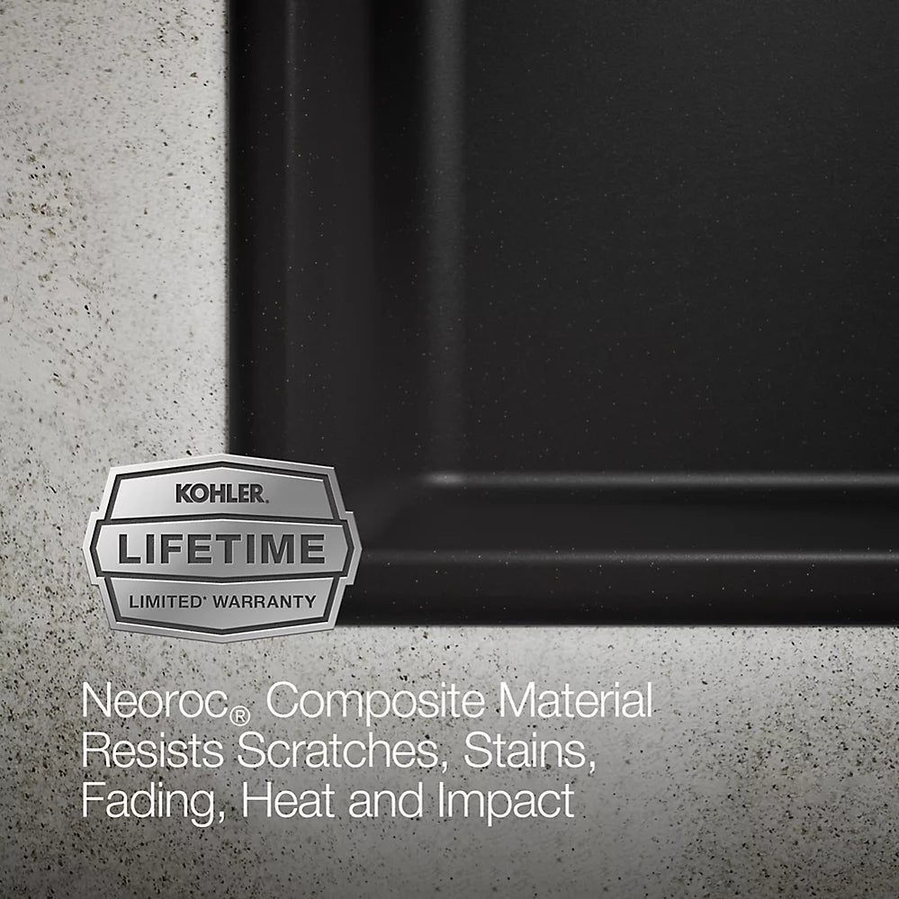 The Kennon® 33" top-/undermount double-bowl kitchen sink is made of KOHLER® Neoroc®, a matte-finish composite material designed for extreme durability and unmatched beauty.