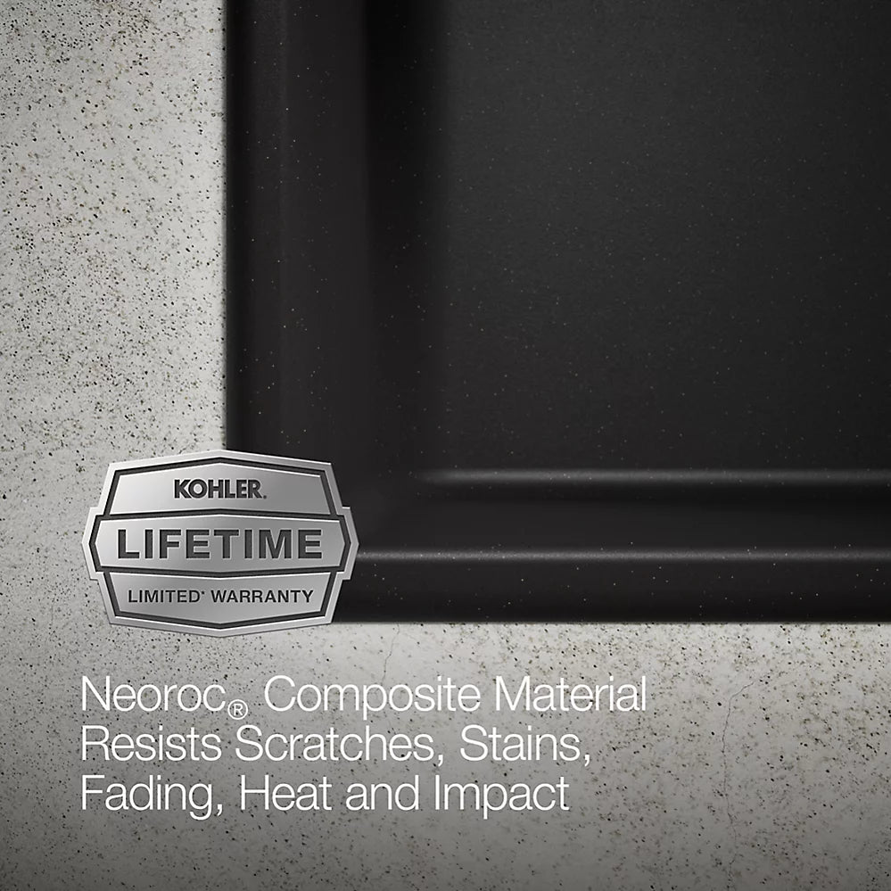 The Kennon 33" top-/undermount double-bowl kitchen sink is made of KOHLER® Neoroc®, a matte-finish composite material designed for extreme durability and unmatched beauty.