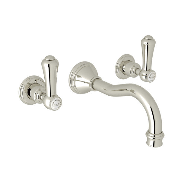 Perrin & Rowe Georgian Era Wall Mount Widespread Bathroom Faucet - Polished Chrome With White Porcelain Lever Handle.3793LSP-APC/TO