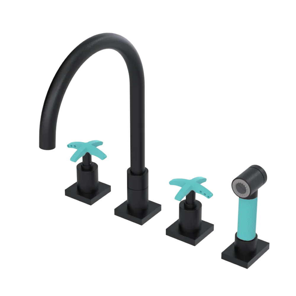 Rubinet Widespread Kitchen Set with Hand Spray Matt Black