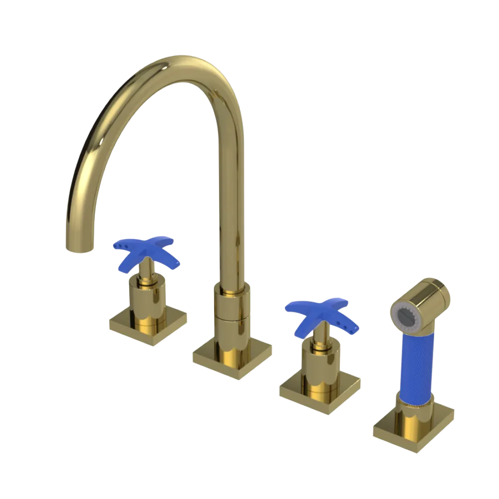 Rubinet Widespread Kitchen Set with Hand Spray Natural Brass