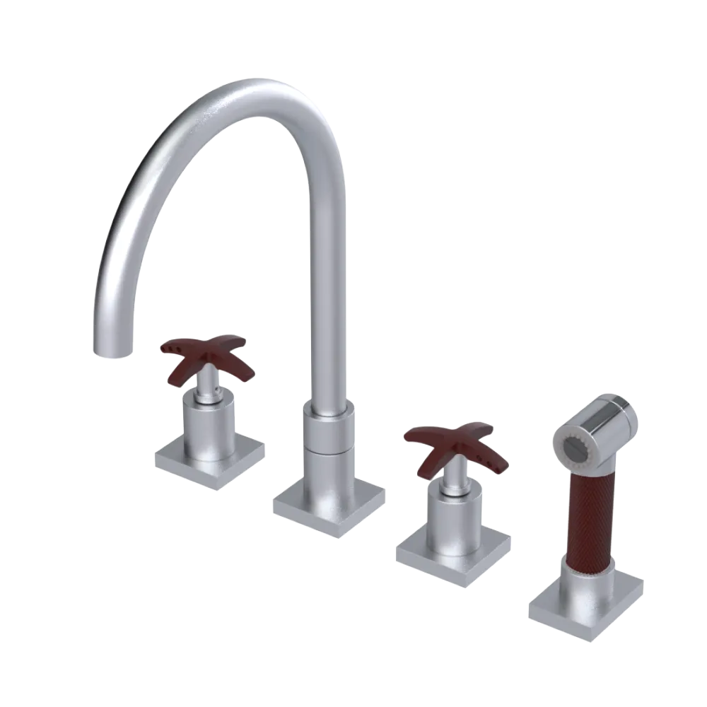 Rubinet Widespread Kitchen Set with Hand Spray Satin Chrome