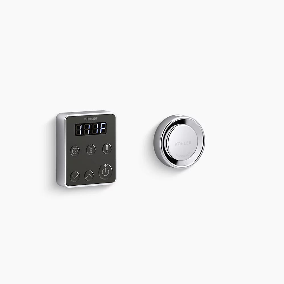 Fast-Response® technology produces a luxurious steam shower in 60 secondsPower Clean™ technology offers one-touch automatic cleaning and safe maintenanceSteam head features an integral aromatherapy well for adding scentsCircular steam head projects from finished wall, allowing steam to evenly dispense throughout showerEasily adjustable control panel allows user to set temperature (90-125°F range) and steam session duration20-minute safety shutoffFor use with Invigoration™ Series 5kW - 15kW Steam GeneratorsIncludes control panel and steam head with aromatherapy reservoirRequired for use with KOHLER Invigoration® 5kW-15kW steam generatorsImproved sensor reduces temperature fluctuations for a consistent steam shower temperatureControls the Power Clean featureDigital display with clockQuick-connect RJ-12 cord and connector for simplified installation and serviceMounting arm and gasket included