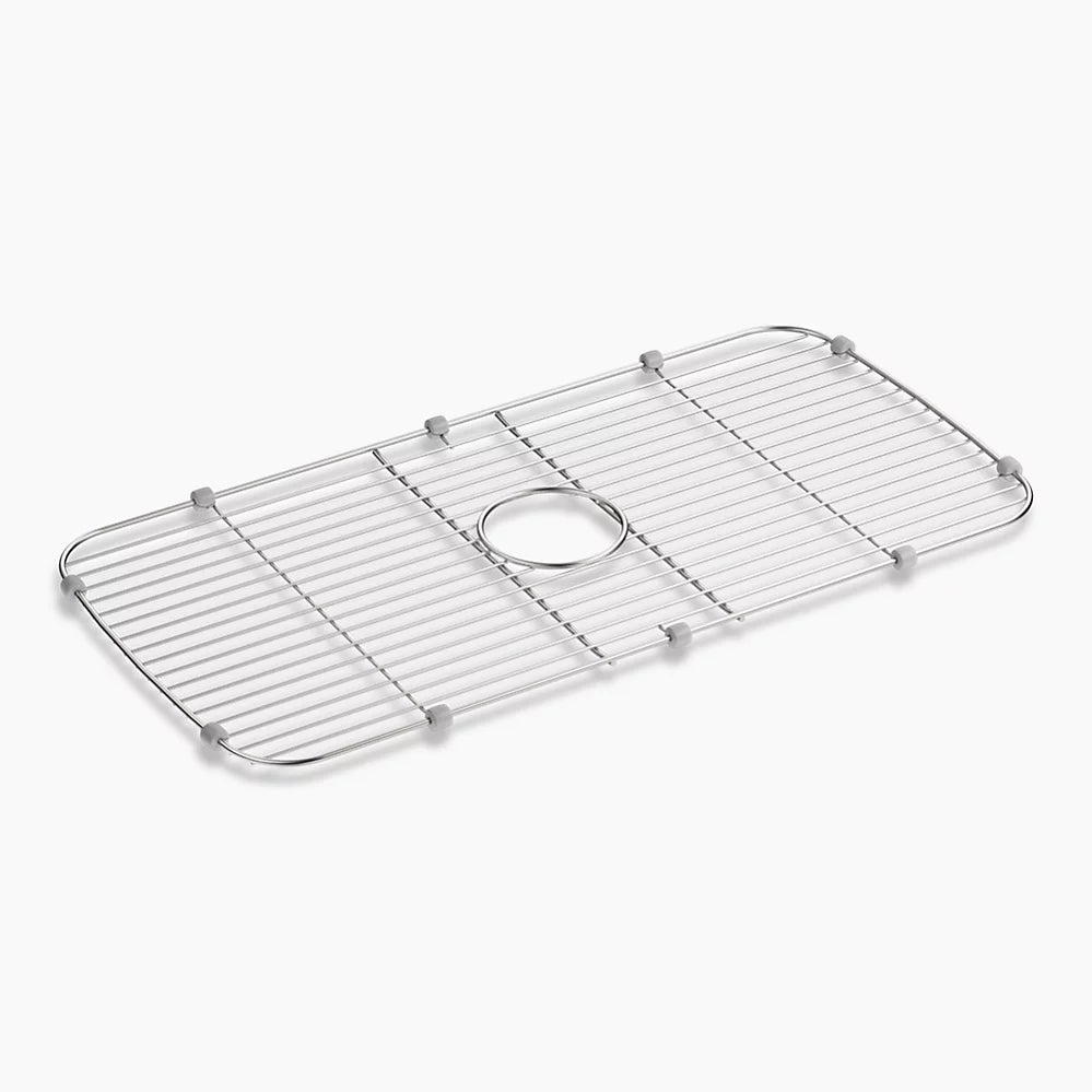 Designed to conveniently fit the bottom of your sink basin, this stainless steel rack helps safeguard your fragile dishes and protects the sink's surface.